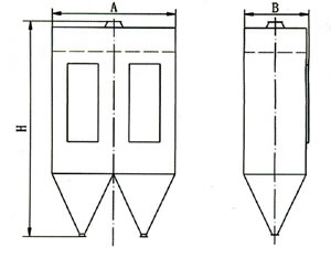 1、含尘气体由进口进入中部箱体, 经过滤袋气体得到净化后进入上部箱体后从排气口排出。粉尘被分离后吸附在滤袋外侧表面。
