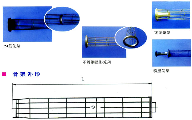 | 骨架直径 φ(mm) | 配用滤袋直径 φ(mm) | 长度种类L (mm) | 纵向筋 | ||
