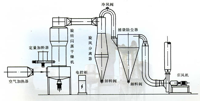 Rotating and flash streaming drier has features such as reasonable design, compact and novel structure, wide range of application, large production capacity, continuous operation, good energy conservation, thus it can be widely used in pigment, fine chemical, pesticide, feed, food, fertilizer, medicine, electronics, chemical, light industry, and other industries.
